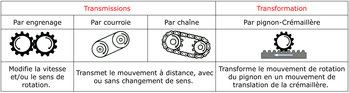 est assurée par des mécanismes permettant de transmettre ou de transformer un mouvement.