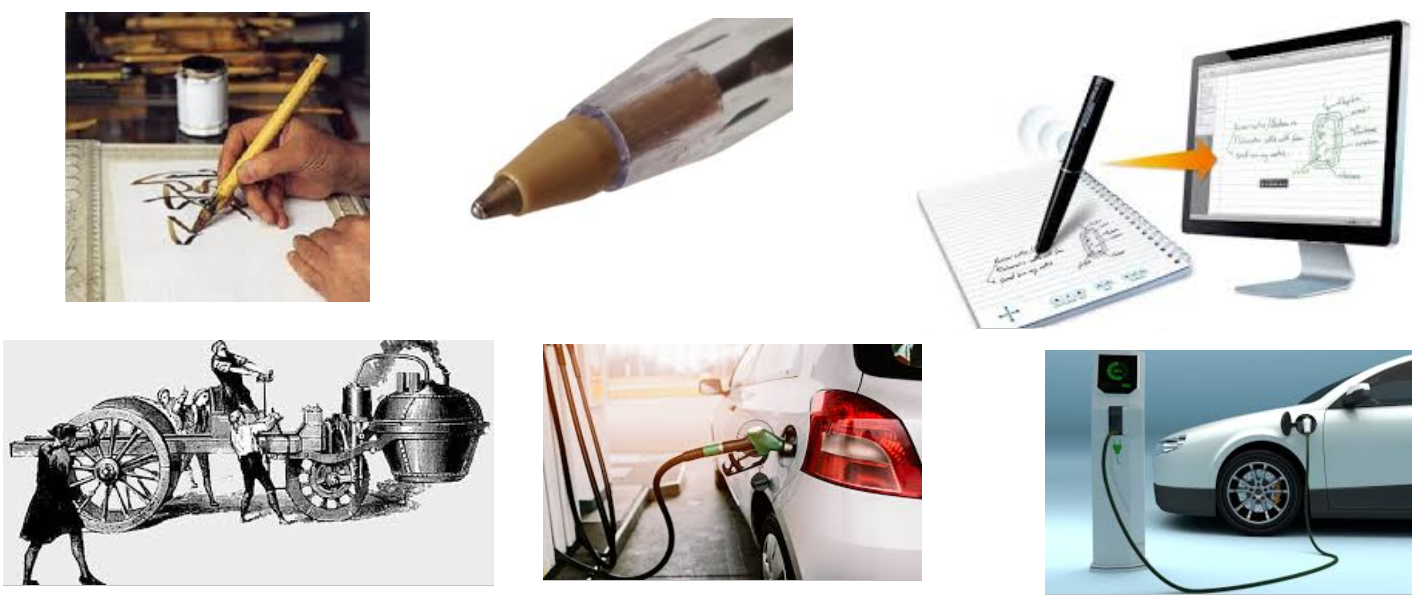 On voit sur cette image 2 objets différents qui ont changé, évolué au cours du temps, leurs formes ont changé, leur taille, leur énergie de fonctionnement, leur principe de fonctionnement, etc...